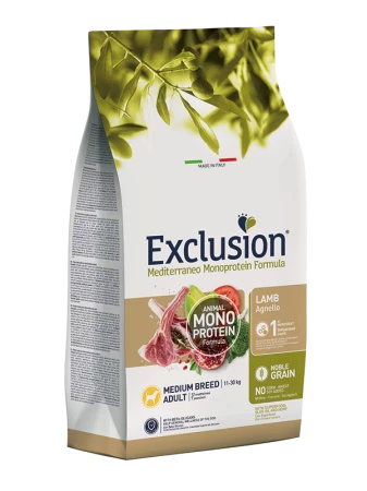 Exclusion Mediterraneo Monoprotein Formula – Noble Grain é un alimento completo e bilanciato formulato con una sola fonte proteica animale disidratata, per una ricetta chiara ed essenziale, e solo un cereale nobile di alta qualità . È preservato con antiossidanti naturali e integrato con Beta-glucani. È realizzato con una innovativa ricetta di Superfood della tradizione Mediterranea: Canapa, Olio d’Oliva, Pomodoro, Melagrana, Broccolo e Cicoria. Senza grasso di pollo, frumento, soia e mais aggiunti.