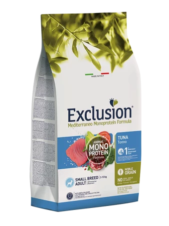 Exclusion Mediterraneo Monoprotein Formula – Noble Grain é un alimento completo e bilanciato formulato con una sola fonte proteica animale disidratata, per una ricetta chiara ed essenziale, e solo un cereale nobile di alta qualità. È preservato con antiossidanti naturali e integrato con Beta-glucani. È realizzato con una innovativa ricetta di Superfood della tradizione Mediterranea: Canapa, Olio d’Oliva, Pomodoro, Melagrana, Broccolo e Cicoria. Senza grasso di pollo, frumento, soia e mais aggiunti.