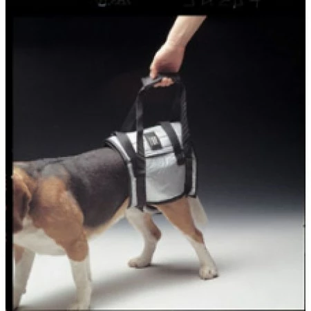 Imbragatura salvacane utile in presenza di problemi agli arti posteriori. Per cani di taglia grande tipo:Boxer, Dobermann, Pastore tedesco, Labrador. Fornisce un efficace supporto post operatorio per il vostro cane. Aiuta l’esercizio durante il processo di recupero. Riduce il peso di zampe posteriori e della colonna vertebrale. Istruzioni per l’uso Con il taglio rivolto in avanti, introdurre le zampe posteriori del cane negli appositi fori. Assicurarsi che la cinghia di supporto lasci passare i quarti posteriori. Infilare l’imbragatura nelle zampe del vostro cane fino a che non può essere avvolta intorno al posteriore. Quindi chiudere il “velcro” e gli elementi di fissaggio. Controllare che sia inserito correttamente (con i cani maschi verificare che l’orifizio urinario sia libero) prima di fissare le cinghie. Prendere la cinghia di supporto e sollevare il posteriore del vostro cane per assicurarsi che lui / lei sta bene, prima di procedere con esercizi leggeri.