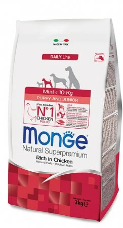 Le crocchette Monge Natural Superpremium Mini Puppy & Junior con Pollo sono un alimento completo per cuccioli di piccola taglia. Garantiscono il benessere del cane grazie alla presenza di elementi nutritivi di altissima qualità, frutto della ricerca Made in Italy. Il primo ingrediente è il pollo e sono arricchite con xilo oligossacaridi (X.O.S.), prebiotici naturali che favoriscono la salute dell’intestino. Contengono estratto di carciofo, echinacea, origano e aglio che stimolano le difese immunitarie e proteggono il fegato. Condroitina, glucosamina, calcio e fosforo aiutano il corretto sviluppo delle ossa e delle articolazioni del cucciolo.